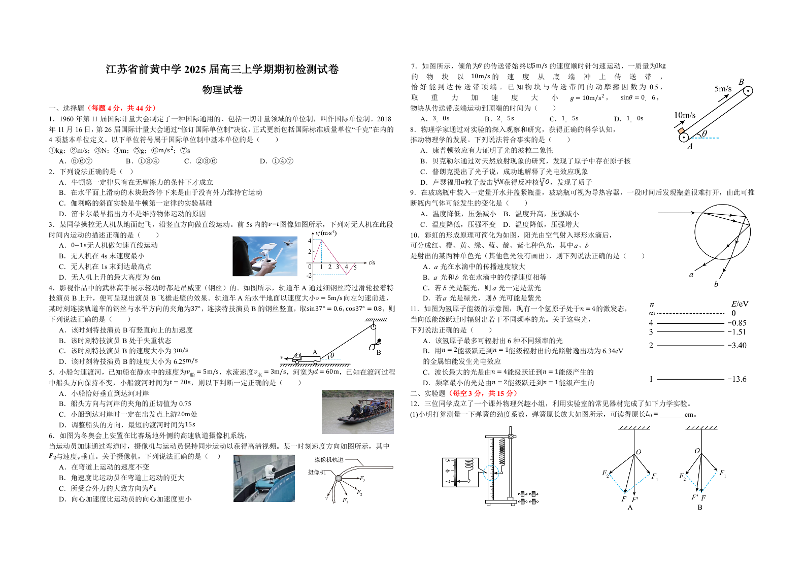 江苏省前黄高级中学2024-2025学年高三上学期期初检测 物理