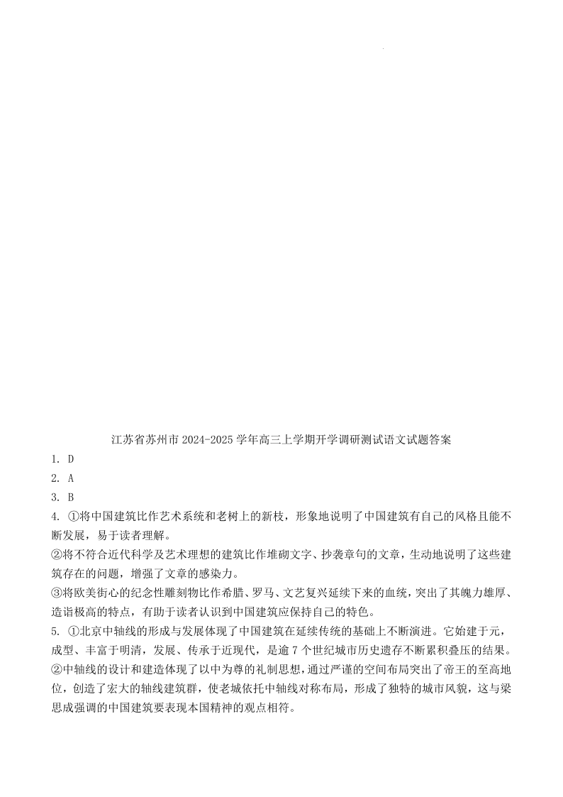 江苏省苏州市2025届高三年级期初阳光调研试卷 语文答案