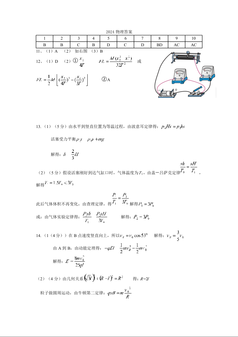 长治市2024-2025学年度高三年级九月份质量监测 物理答案