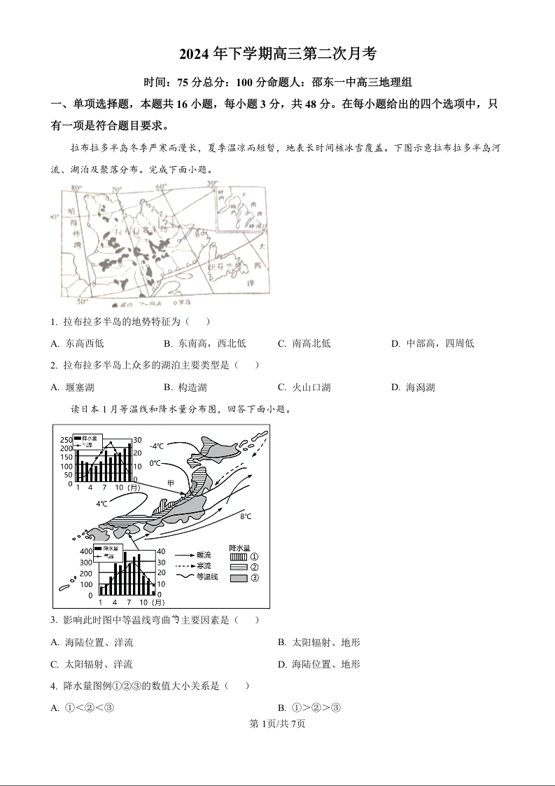 湖南省邵东市第一中学2025届高三9月第二次月考 地理