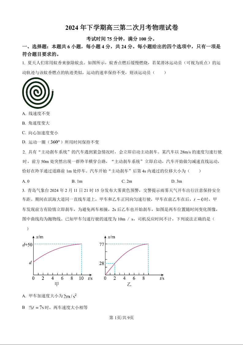 湖南省邵东市第一中学2025届高三9月第二次月考 物理