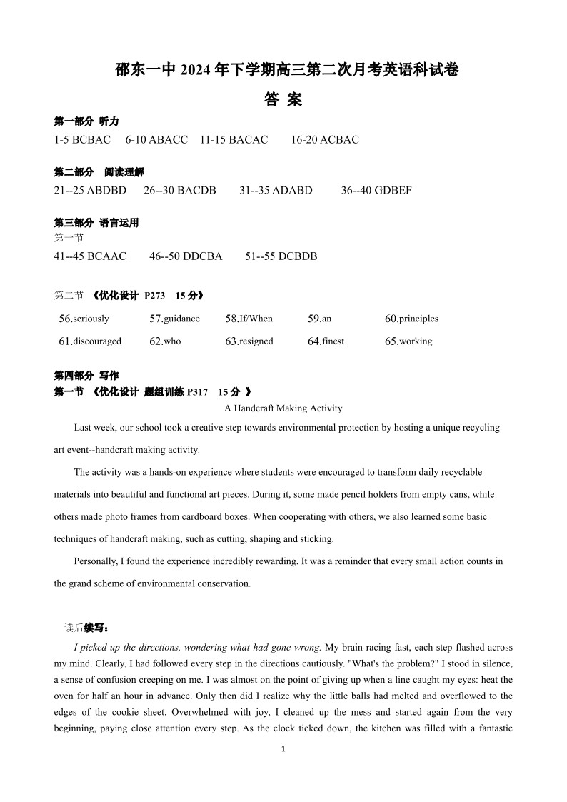 湖南省邵东市第一中学2025届高三9月第二次月考 英语答案