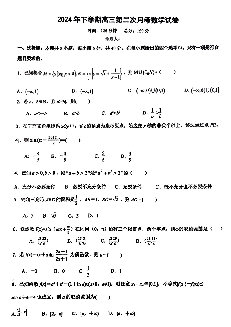 湖南省邵东市第一中学2025届高三9月第二次月考 数学