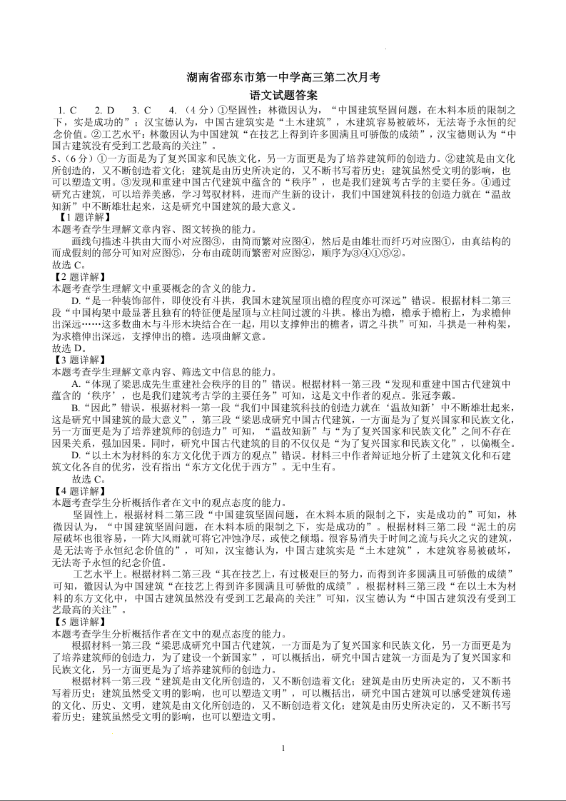 湖南省邵东市第一中学2025届高三9月第二次月考 语文答案