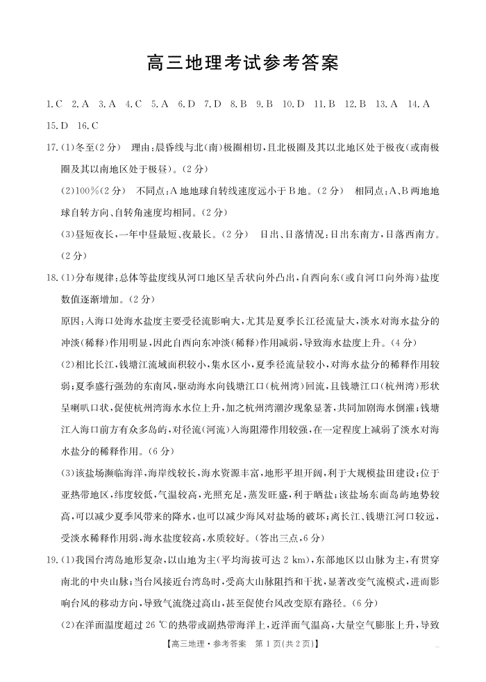 陕西省部分学校2025届高三9月联考 地理答案