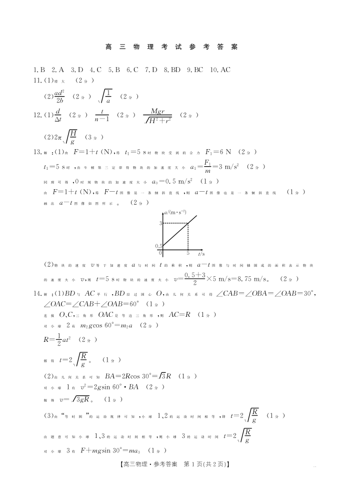 陕西省部分学校2025届高三9月联考 物理答案