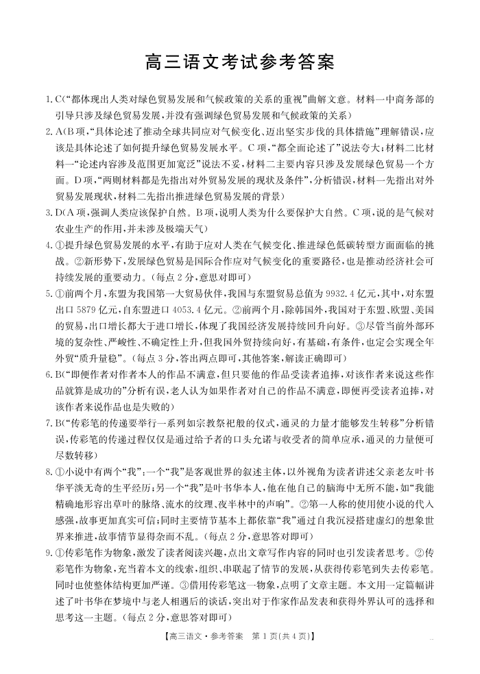 陕西省部分学校2025届高三9月联考 语文答案