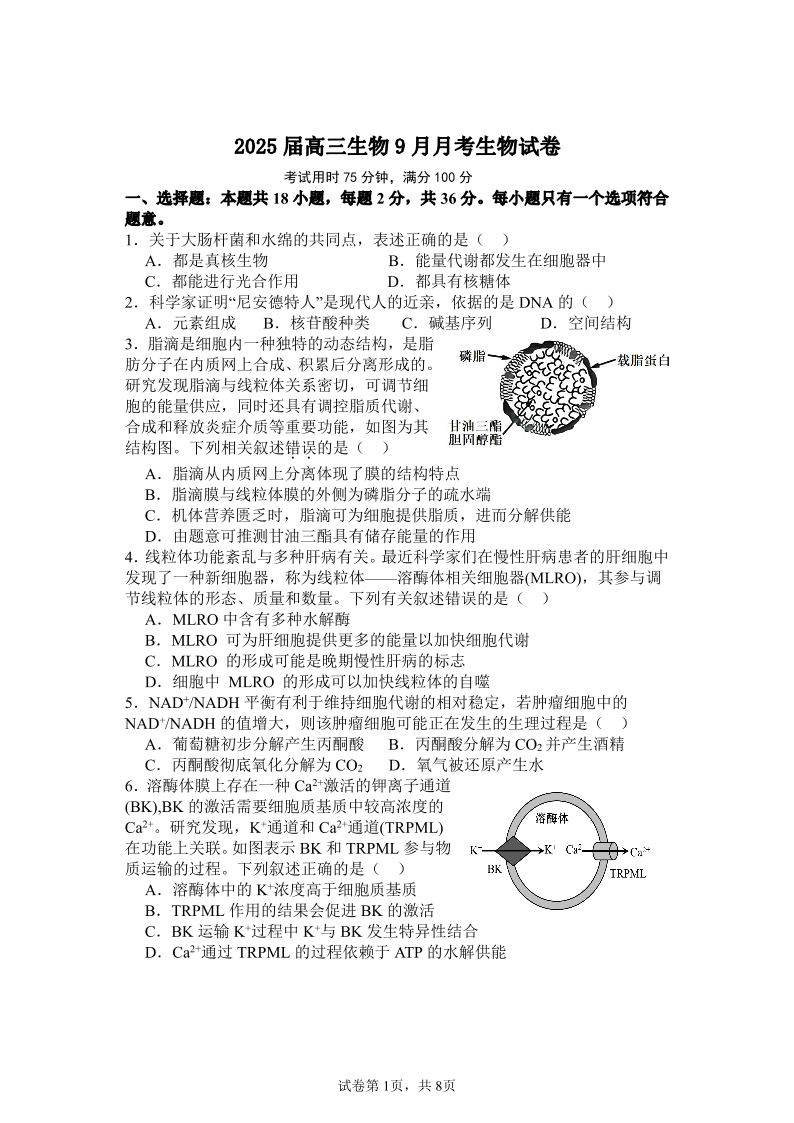 湖北省宜城市第一中学2024-2025学年高三上学期9月月考 生物