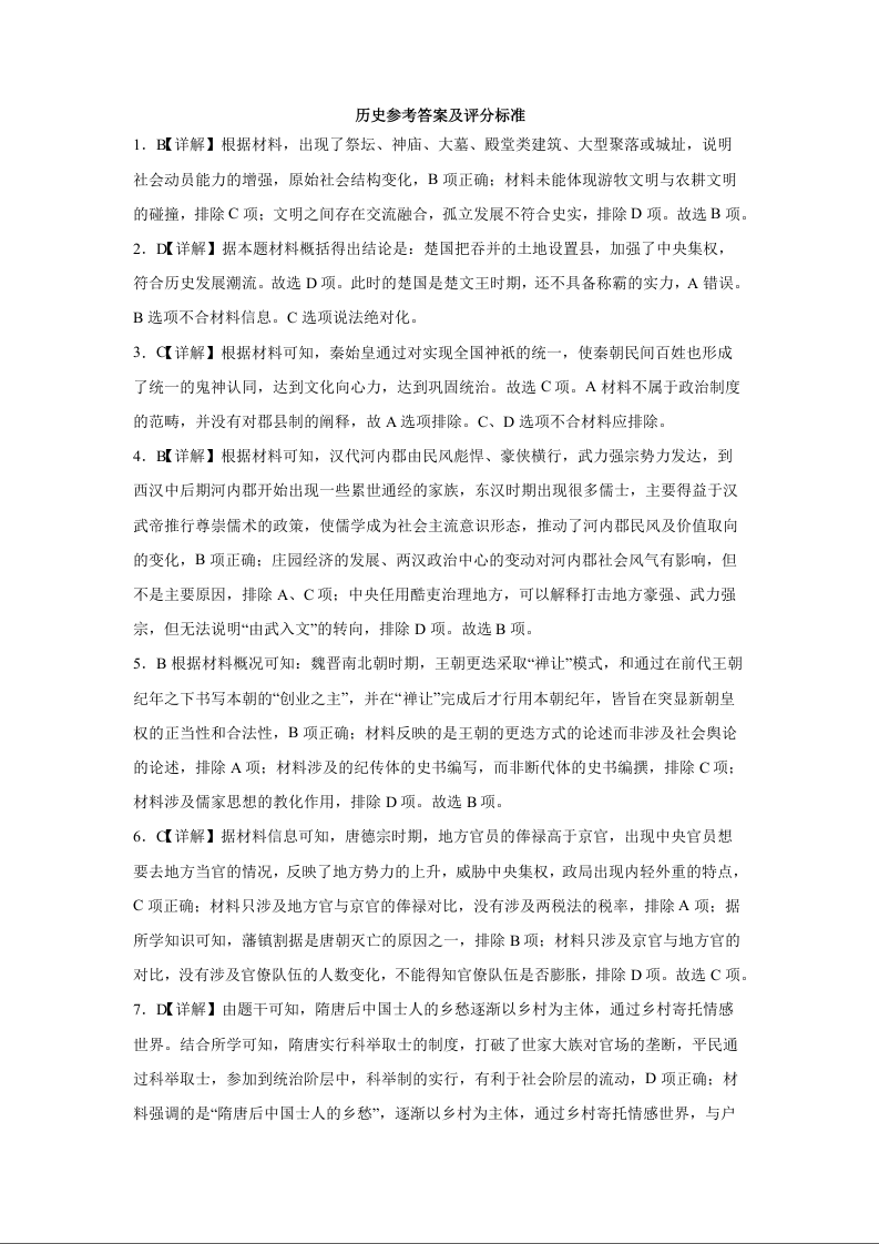 湖北省宜城市第一中学2024-2025学年高三上学期9月月考 历史答案