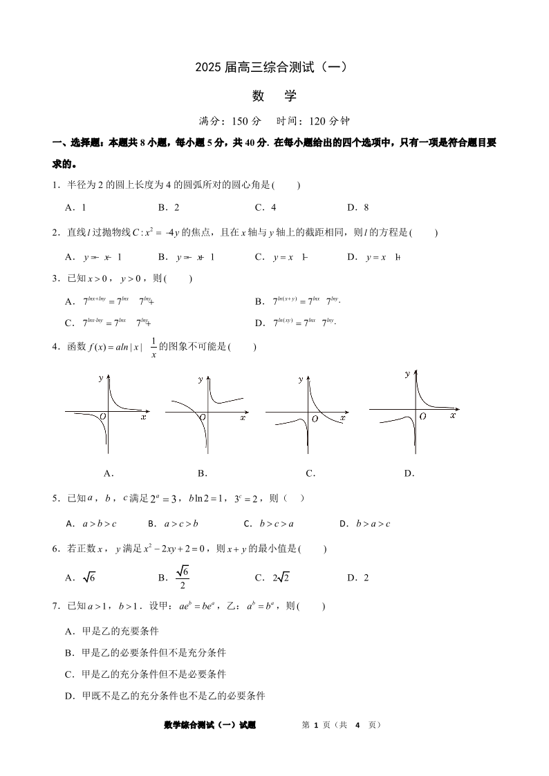广东省华南师范大学附属中学2025届高三综合测试(一)数学