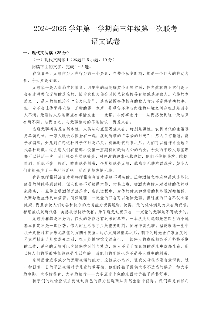 江苏省淮安市十校2024-2025学年高三上学期第一次联考 语文