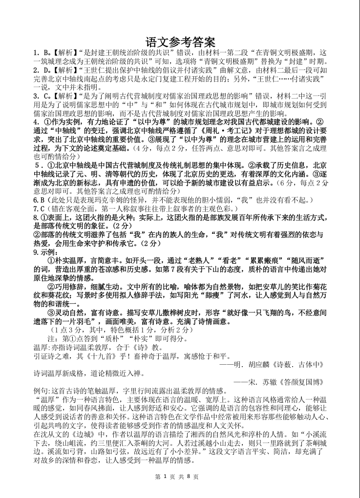 四川省射洪中学高2022级高三一模考试 语文答案