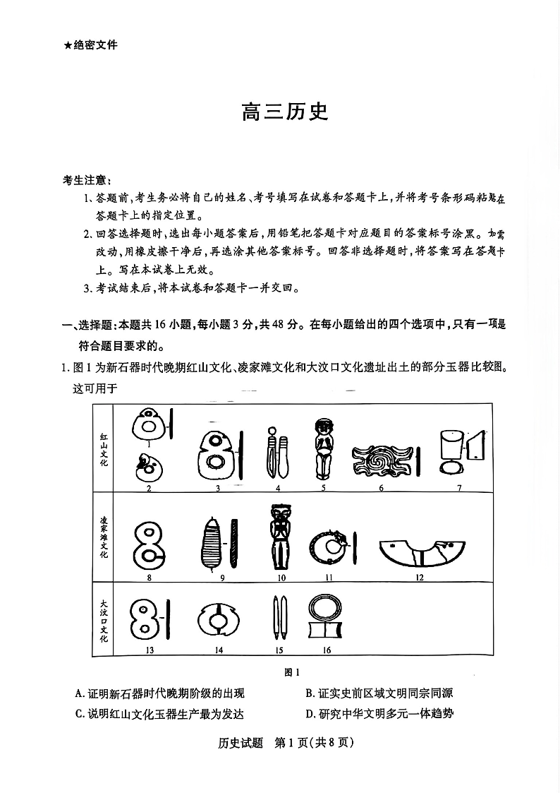 天一大联考2024-2025学年(上)湖南高三一联 历史