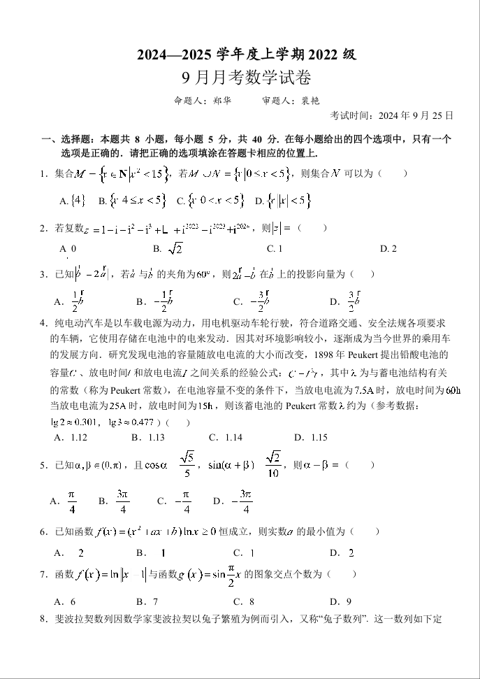 湖北省沙市中学2024-2025学年高三上学期9月月考试题 数学