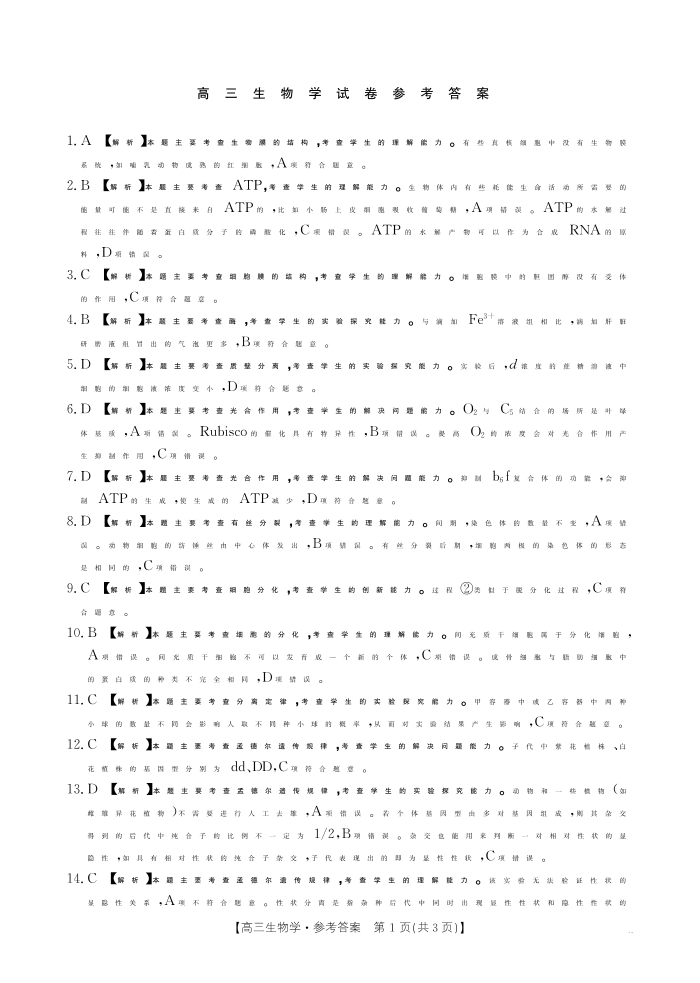 黑吉辽内蒙古2025届高三金太阳大联考 生物答案