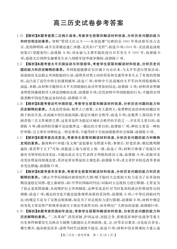 黑吉辽内蒙古2025届高三金太阳大联考 历史答案