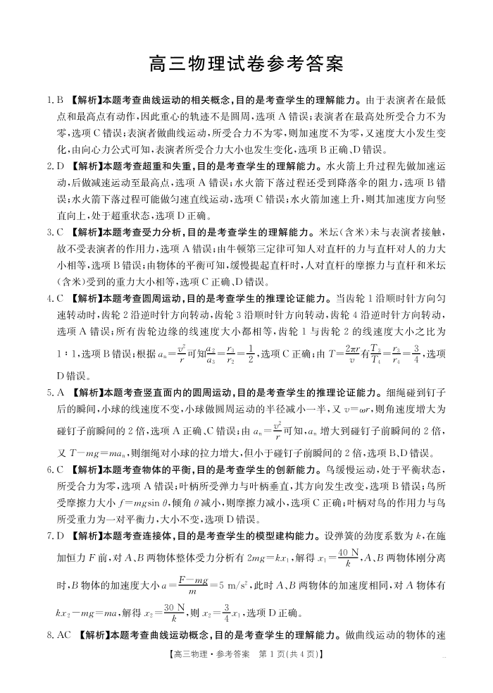 黑吉辽内蒙古2025届高三金太阳大联考 物理答案