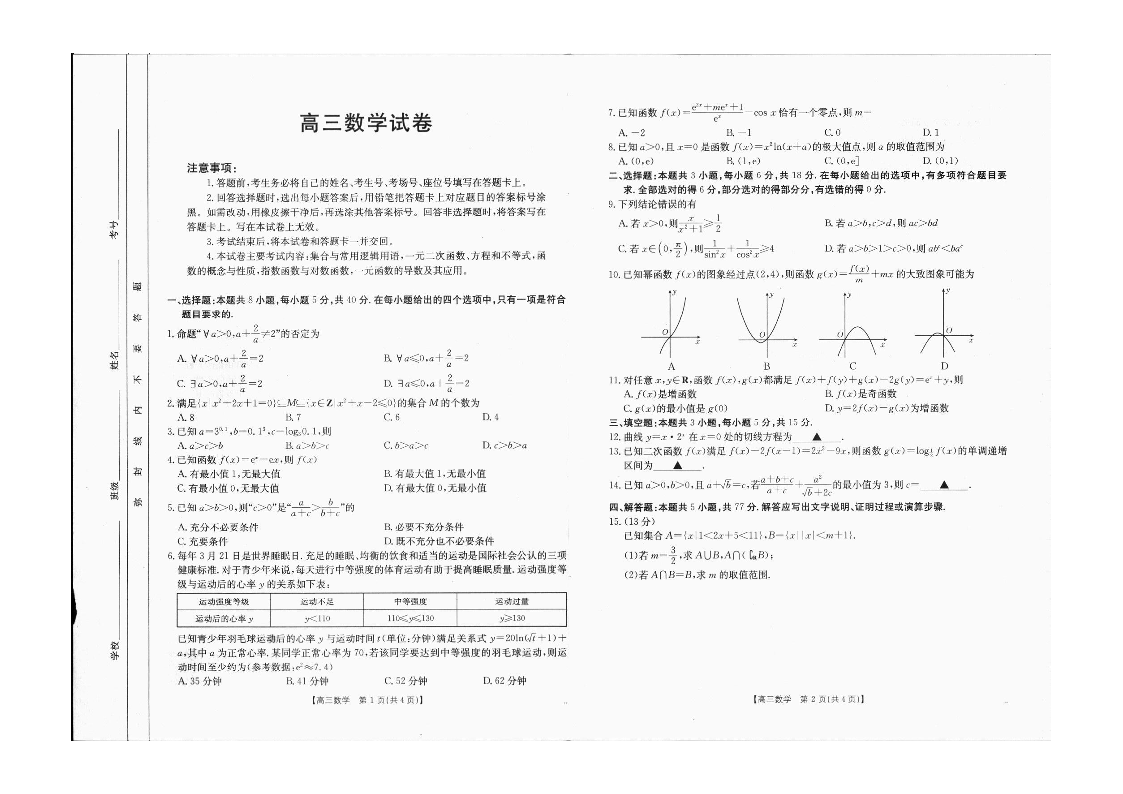 黑吉辽内蒙古2025届高三金太阳大联考 数学