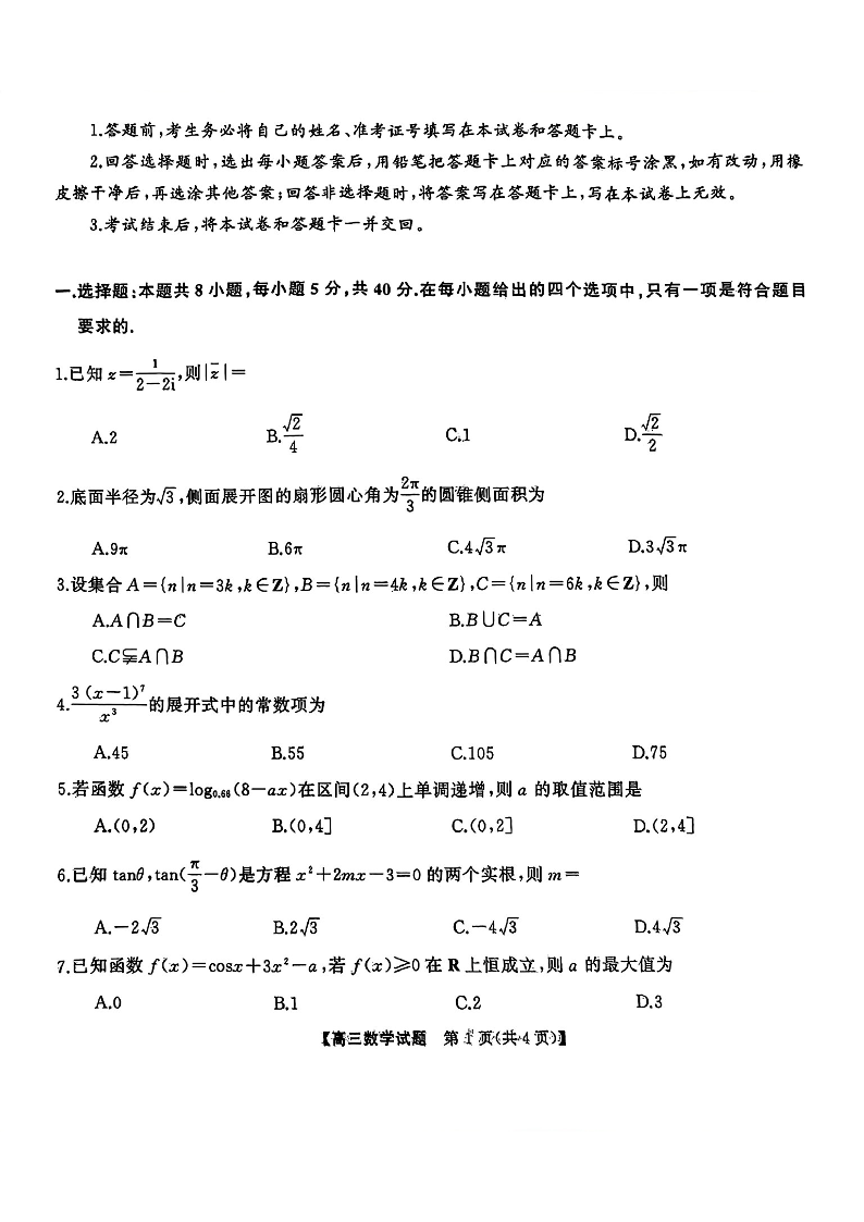 天壹名校联盟&三湘名校教育联盟2025届高三第一次联考 数学