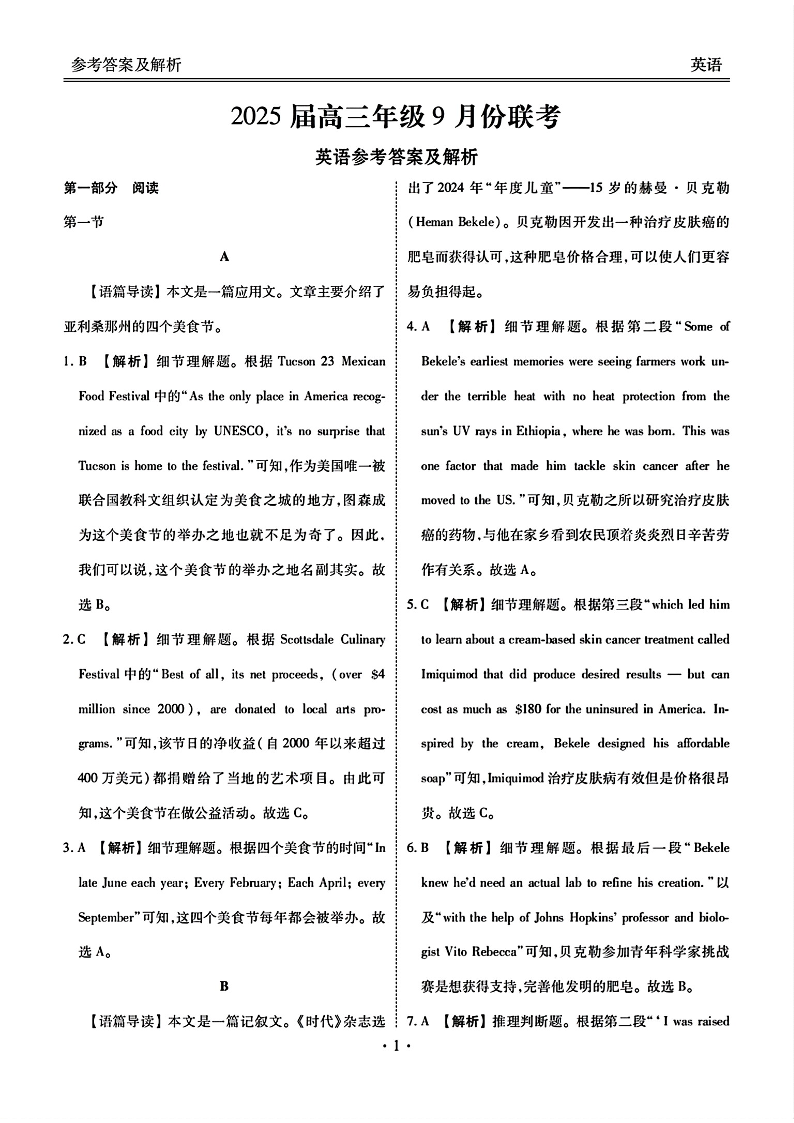 广东省2025届高三年级衡水9月份大联考 英语答案