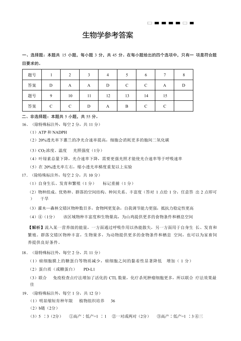 重庆市第八中学2025届高考适应性月考卷(一)生物答案