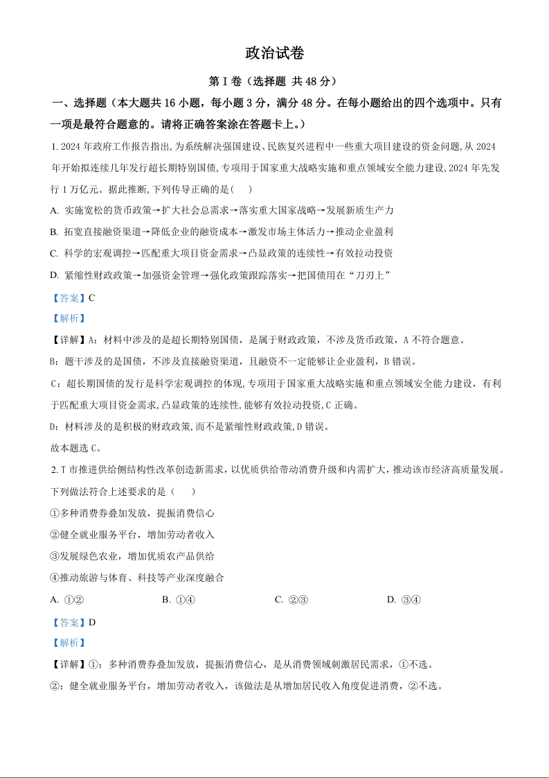 四川省成都列五中学2024-2025学年高三上学期9月月考 政治答案
