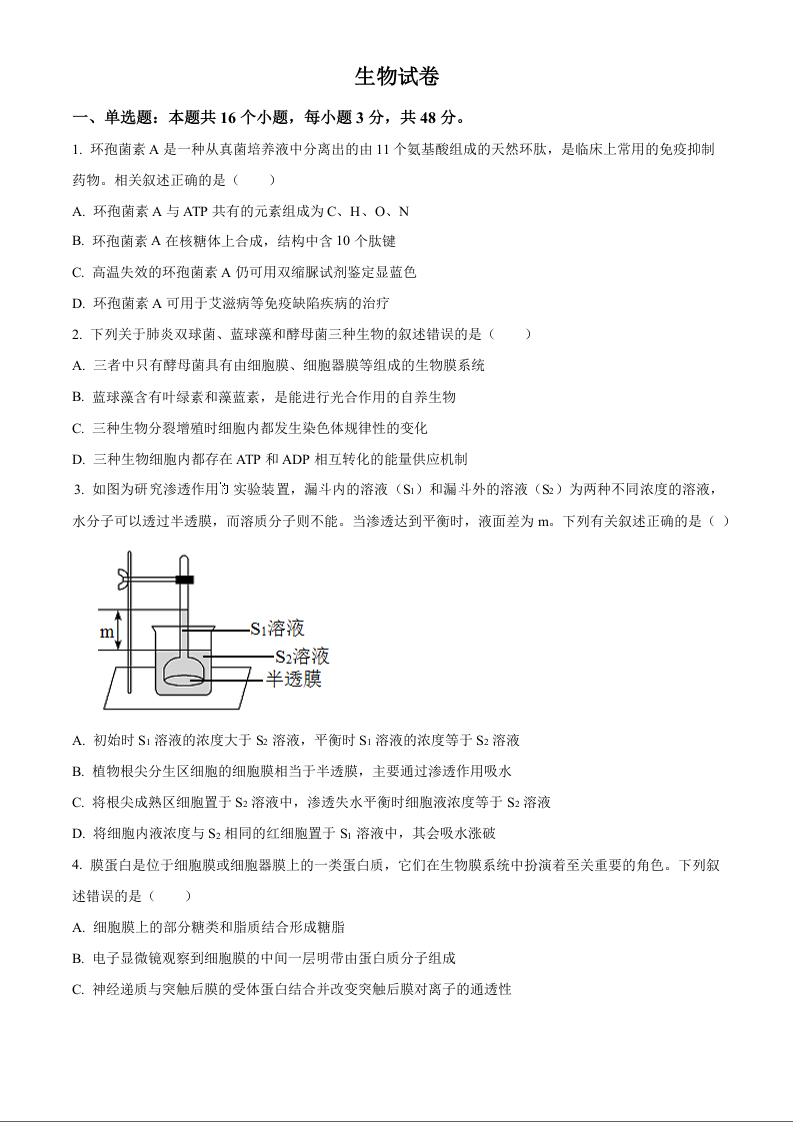 四川省成都列五中学2024-2025学年高三上学期9月月考 生物