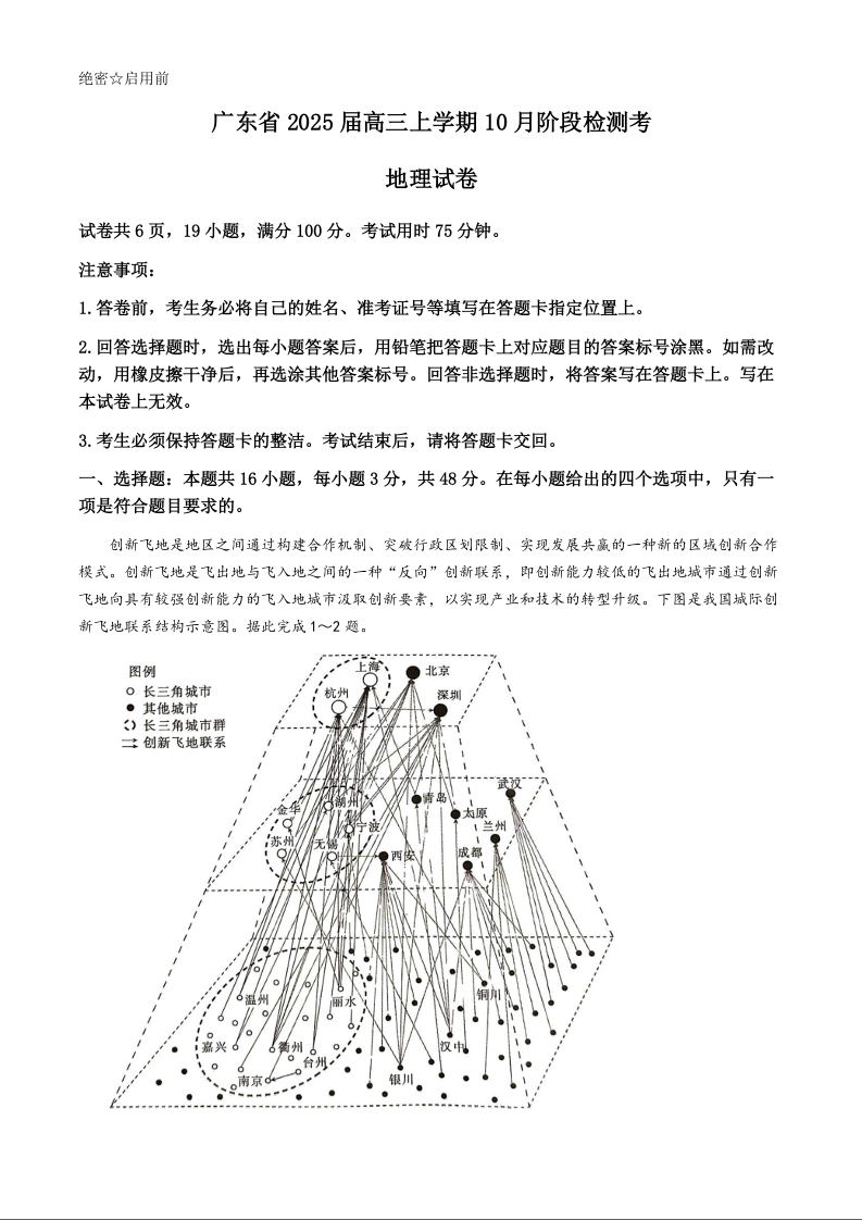 广东省2025届高三上学期10月阶段检测考 地理