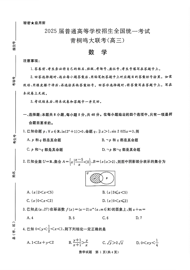 青桐鸣2025届高三10月大联考 数学
