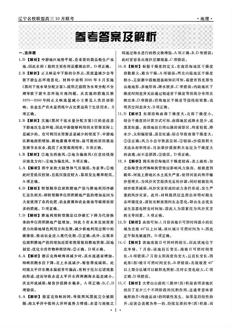 辽宁省名校联盟2024年高三10月份联合考试 地理答案