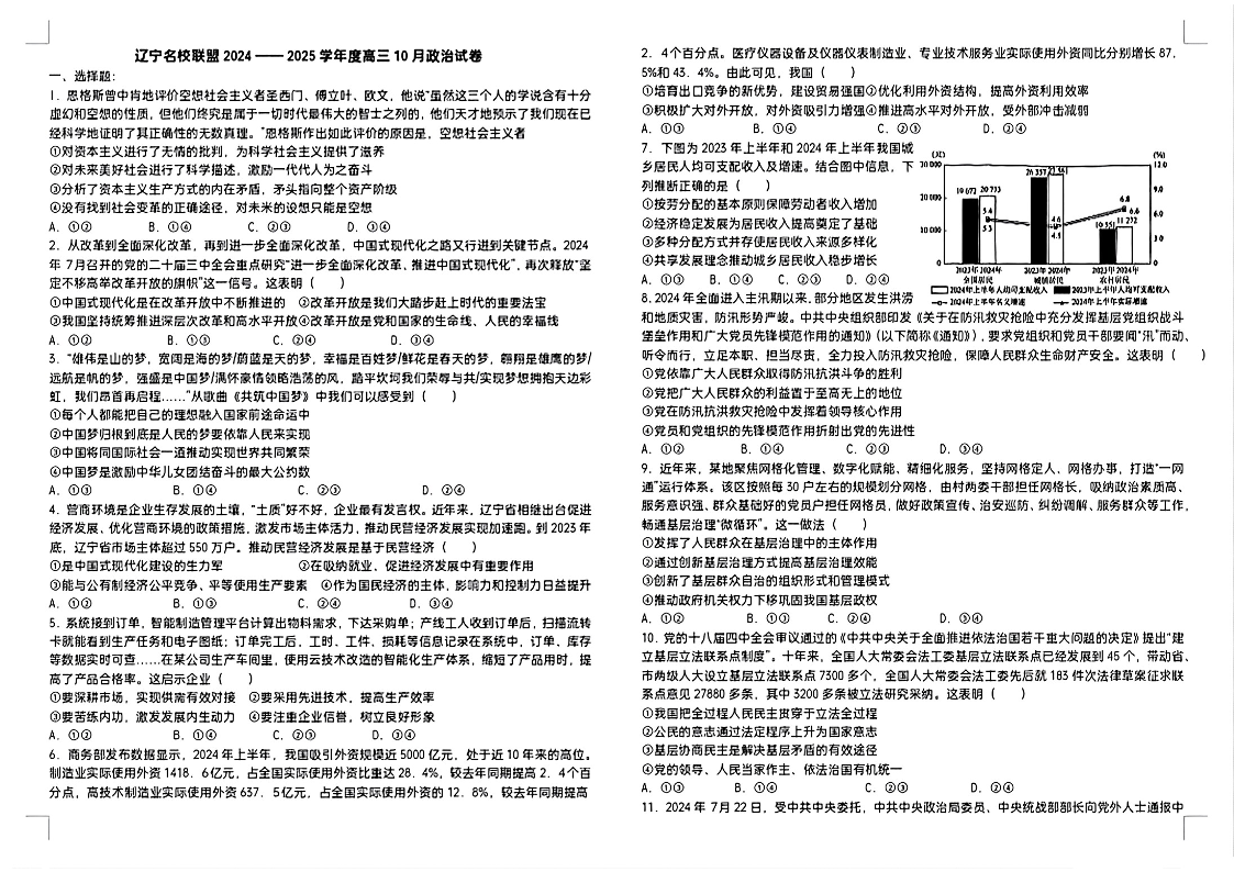 辽宁省名校联盟2024年高三10月份联合考试 政治