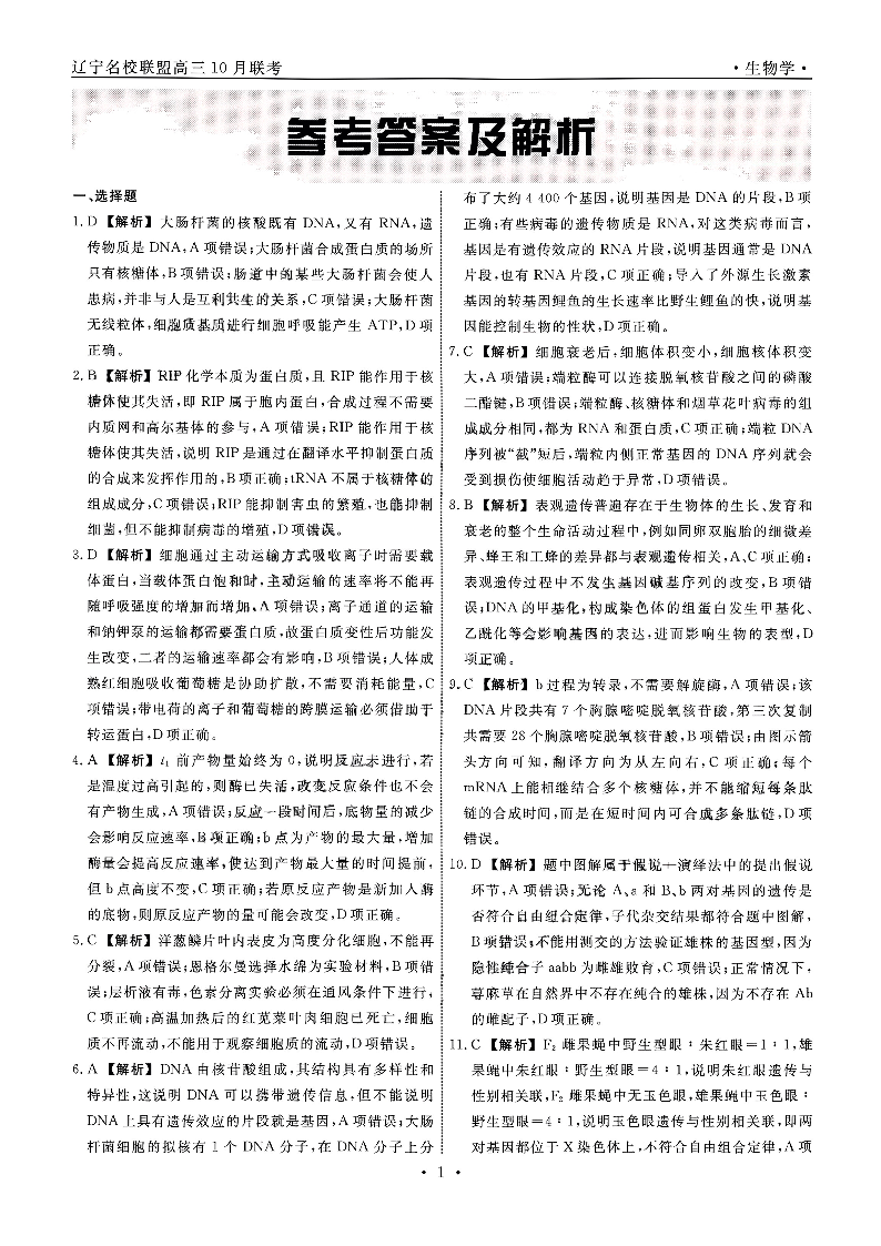 辽宁省名校联盟2024年高三10月份联合考试 生物答案