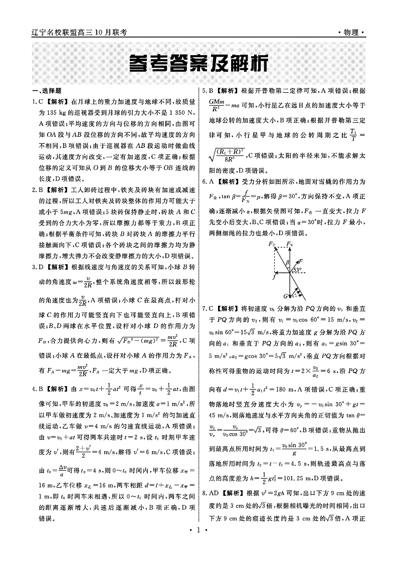 辽宁省名校联盟2024年高三10月份联合考试 物理答案