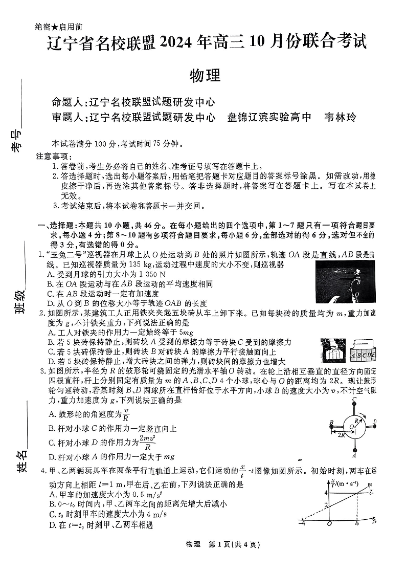 辽宁省名校联盟2024年高三10月份联合考试 物理