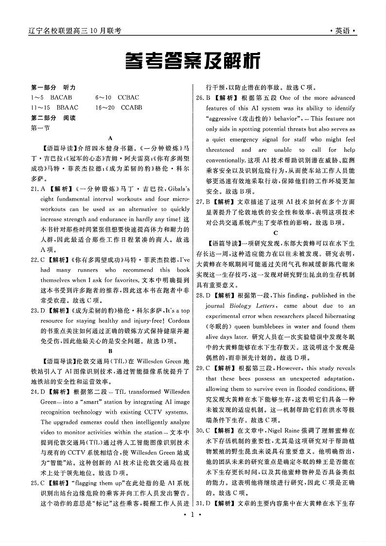 辽宁省名校联盟2024年高三10月份联合考试 英语答案