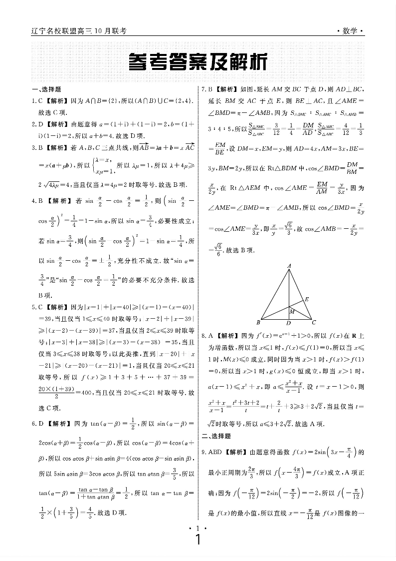辽宁省名校联盟2024年高三10月份联合考试 数学答案