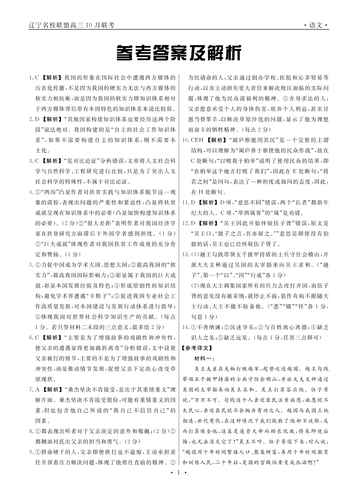 辽宁省名校联盟2024年高三10月份联合考试 语文答案