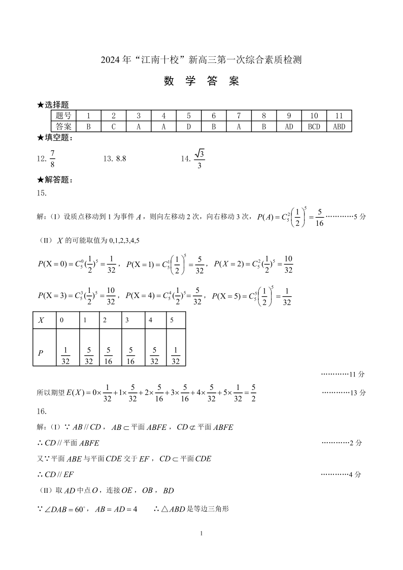 2024年“江南十校”新高三第一次综合素质检测 数学答案