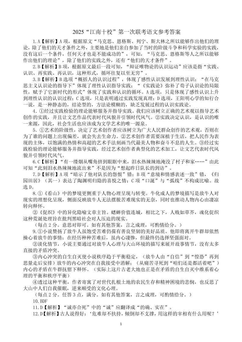 2024年“江南十校”新高三第一次综合素质检测 语文答案