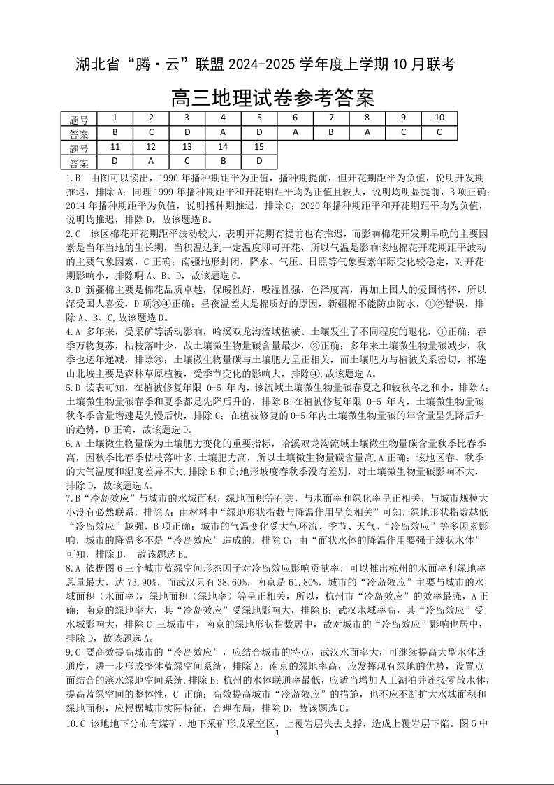 湖北省“腾•云”联盟2024-2025学年度上学期10月联考 地理答案