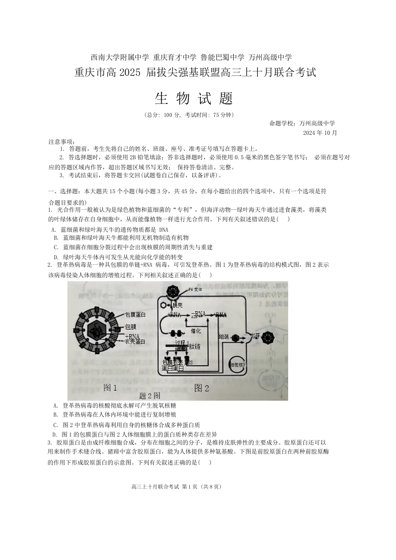 重庆市高2025届拔尖强基联盟高三上10月联合考试 生物