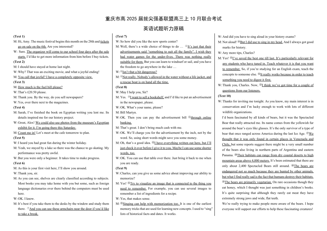 重庆市高2025届拔尖强基联盟高三上10月联合考试 英语答案