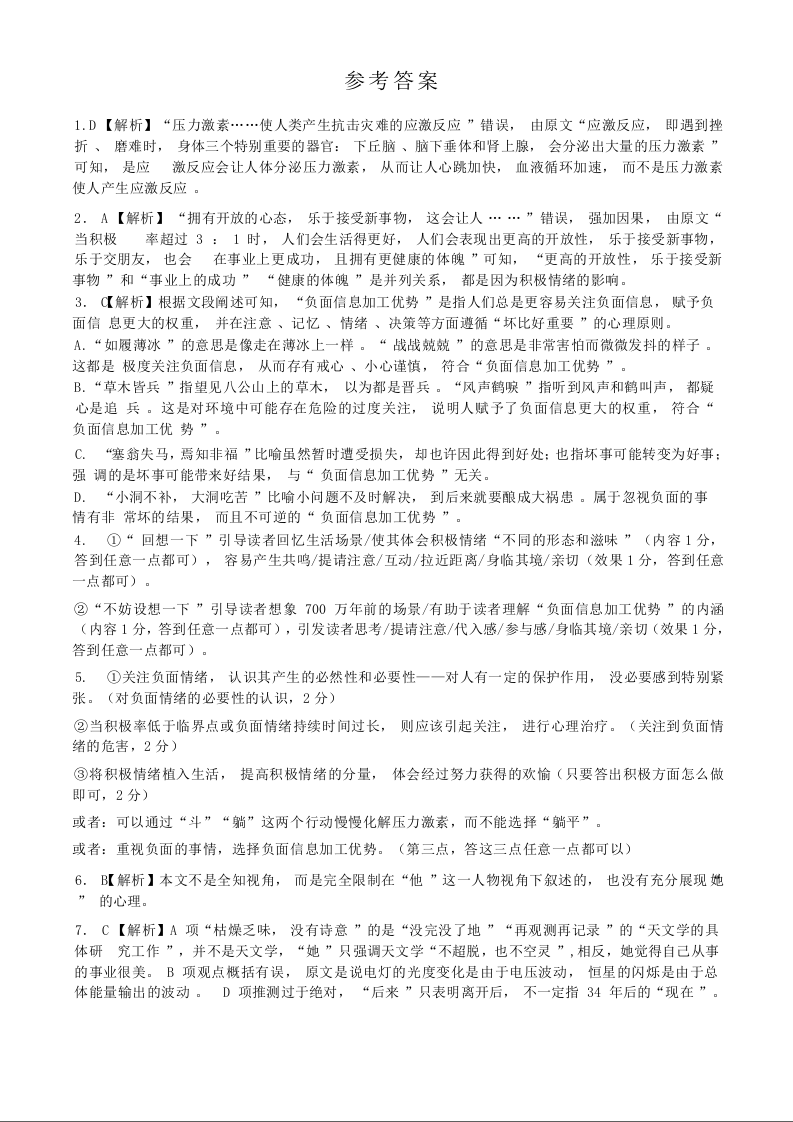 重庆市高2025届拔尖强基联盟高三上10月联合考试 语文答案