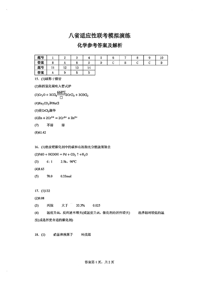 2025年八省适应性联考模拟演练考试 化学答案