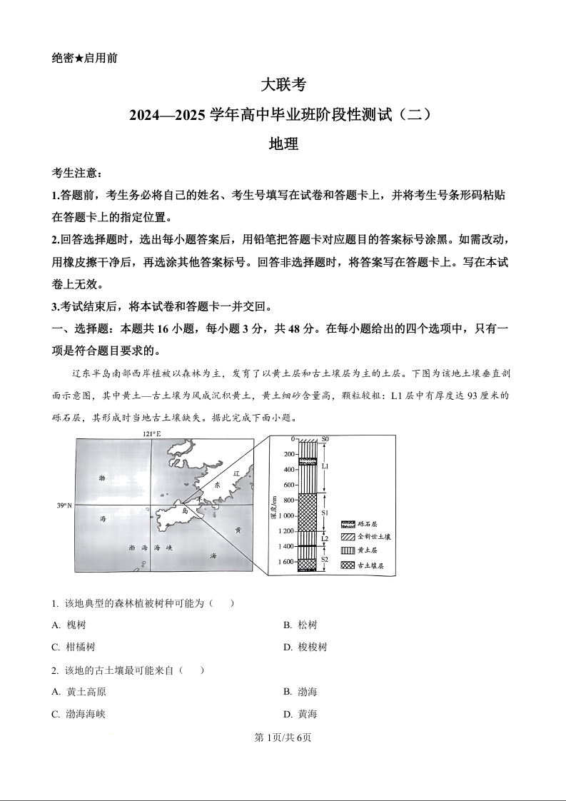 河南省天一大联考2024-2025学年高三上学期阶段性检测(二)地理