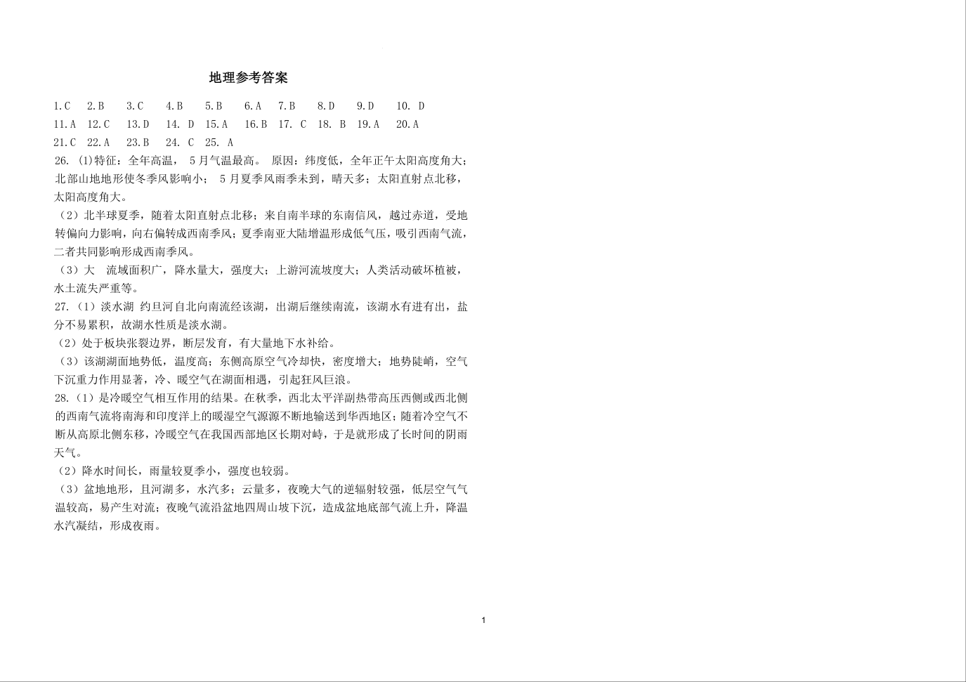 黑龙江省龙东联盟2024-2025学年高三上学期10月月考 地理答案