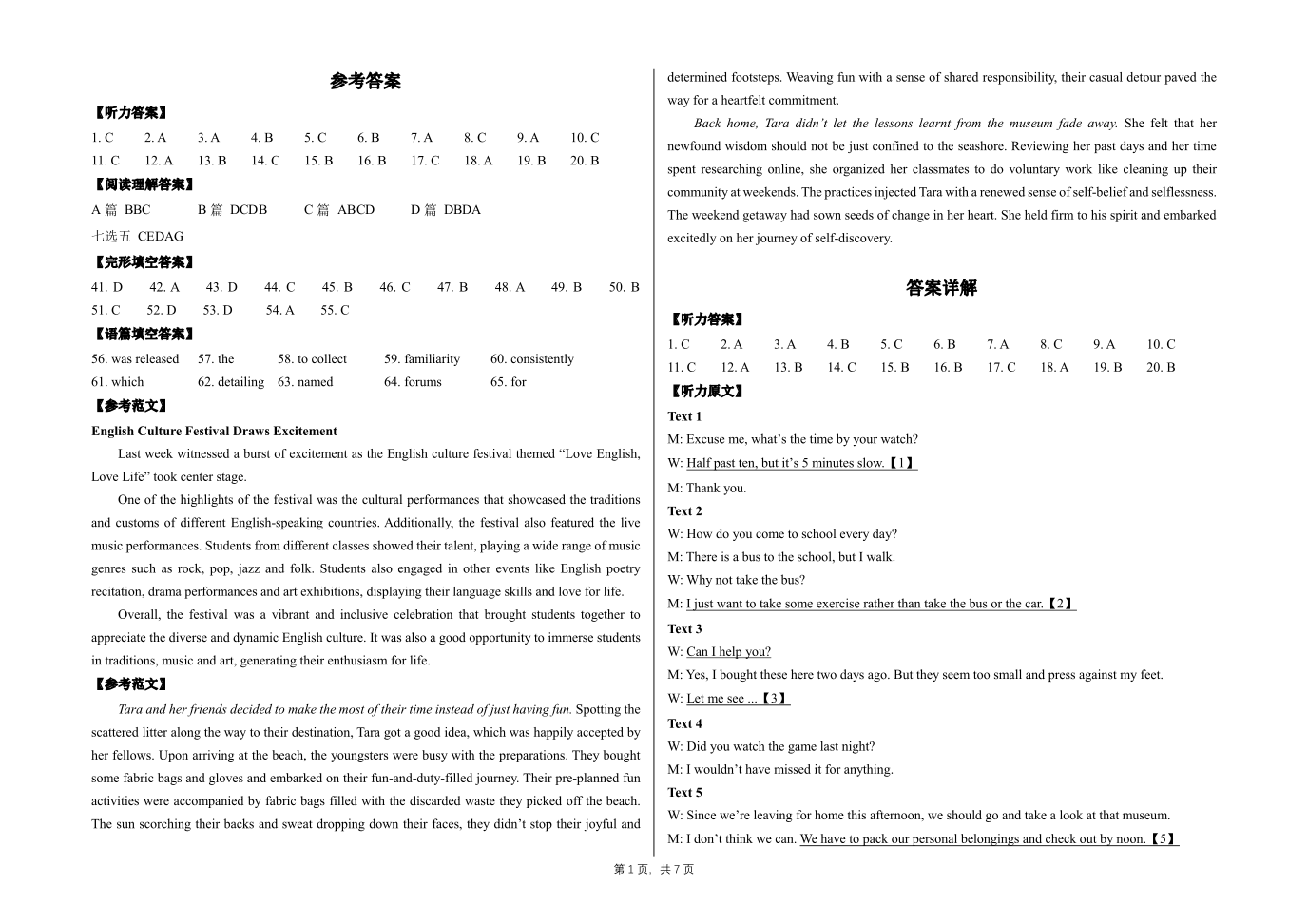 黑龙江省龙东联盟2024-2025学年高三上学期10月月考 英语答案