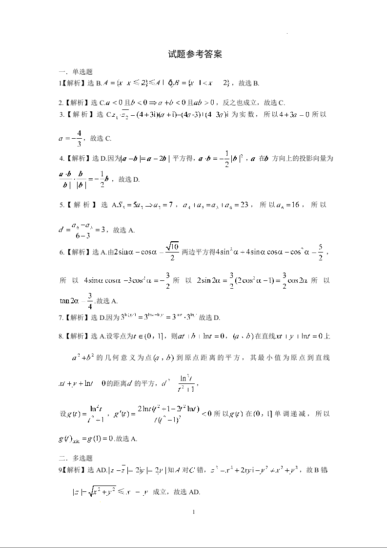 黑龙江省龙东联盟2024-2025学年高三上学期10月月考 数学答案