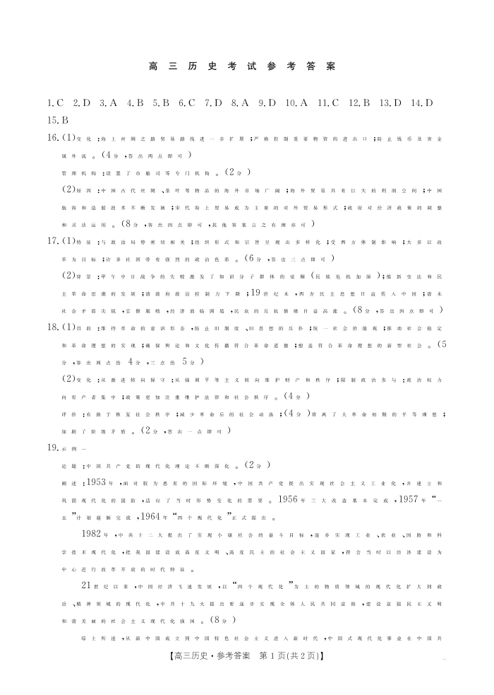湖北省部分学校2024-2025学年高三年级10月联考 历史答案