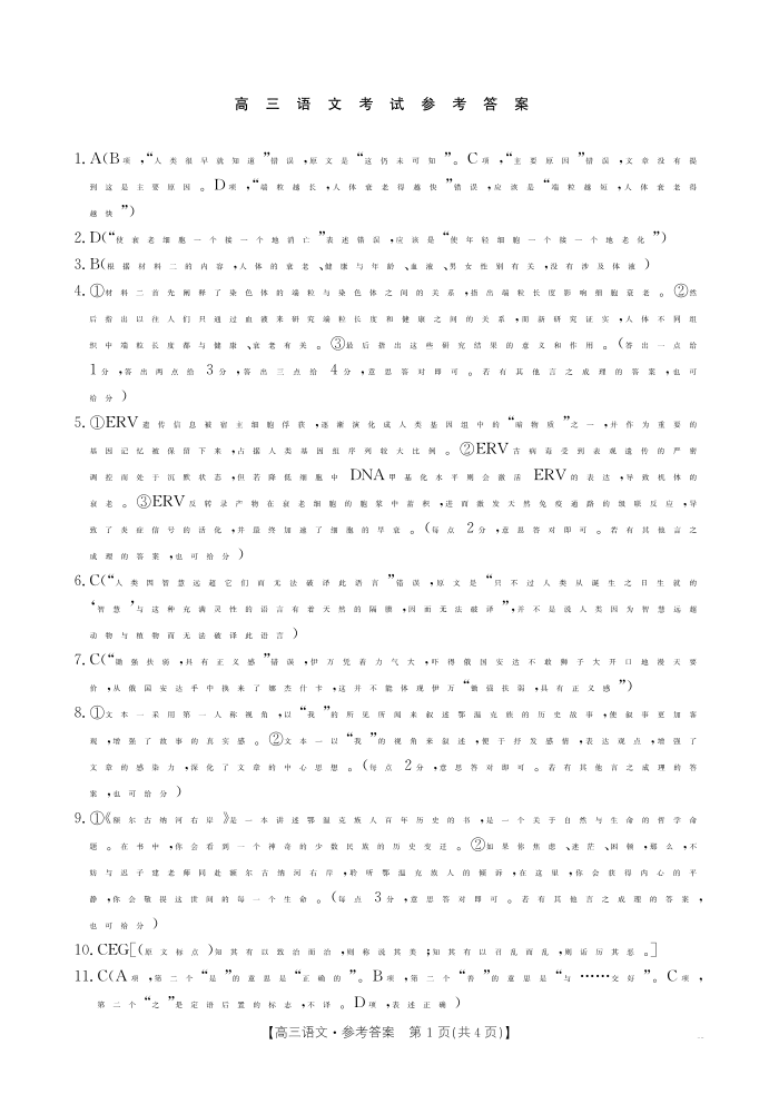 湖北省部分学校2024-2025学年高三年级10月联考 语文答案